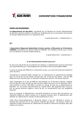 Le Conseil Départemental a voté, le 20 mars 2017 lors de sa séance Plénière, une motion relative au dispositif national d'accueil des Mineurs Non Accompagnés (MNA) et à son impact pour le département du Bas-Rhin. Cette motion a fait état de l'augmentation substantielle des MNA dans le Bas-Rhin depuis 2012 et des moyens croissants mis en œuvre par le Département du Bas-Rhin afin d'en assurer la prise en charge. Afin de répondre à l'accroissement de flux envisagé pour l'année 2017, le présent rapport propose à la Commission Permanente de décider de renforcer l'offre d'accueil en appartements partagés et internat pour les Mineurs Non Accompagnés (MNA) et de décider d'approuver les projets de convention de partenariat à conclure avec les Associations ARSEA (EEP Château d’Angleterre) et Oberholz.