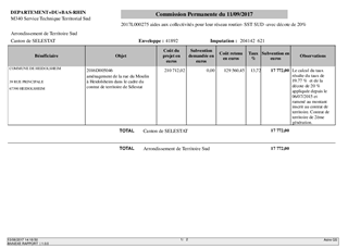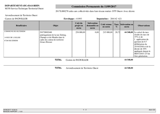 Le présent rapport a pour objet de proposer à la Commission Permanente de décider d’attribuer des subventions aux Communes d’Obersteinbach, Siltzheim et Heidolsheim et groupements de Communes Sauer Pechelbronn et de l’Outre Forêt, pour les travaux de voirie inscrits dans les contrats de territoire.
