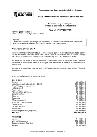 Le présent rapport a pour objet de proposer à la Commission Permanente de décider d’attribuer des subventions pour l’organisation de manifestations.