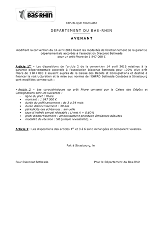 Le présent rapport a pour objet de proposer à la Commission Permanente de décider d’un maintien de garantie suite à une modification des caractéristiques de l’emprunt réalisée par l’association Diaconat Bethesda