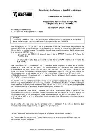 Le présent rapport a pour objet de proposer à la Commission Permanente de décider d’une radiation des inscriptions hypothécaires sollicitée par l’ABRAPA.