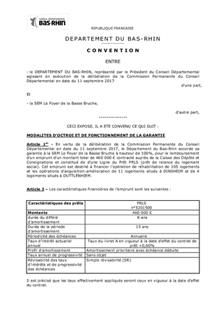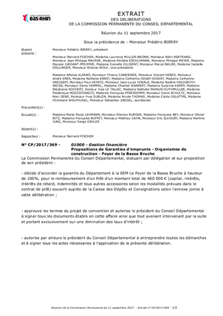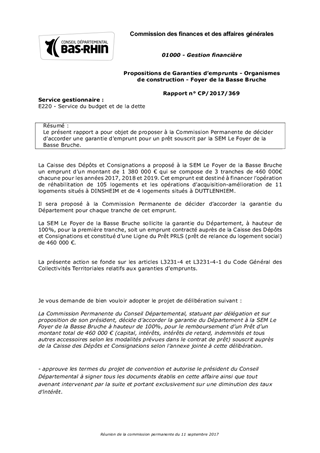Le présent rapport a pour objet de proposer à la Commission Permanente de décider d’accorder une garantie d’emprunt pour un prêt souscrit par la SEM Le Foyer de la Basse Bruche.