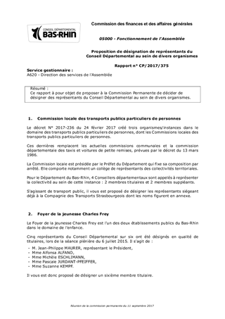 Ce rapport à pour objet de proposer à la Commission Permanente de décider de désigner des représentants du Conseil Départemental au sein de divers organismes.
