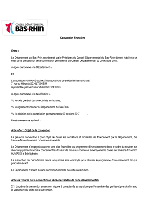 Proposition d'attribution de subventions en faveur de trois associations : HUMANIS à SCHILTIGHEIM ainsi que LIBRE OBJET et LES RESTAURANTS DU COEUR à STRASBOURG dans le domaine de l'insertion, et d'approbation des projets de conventions afférents