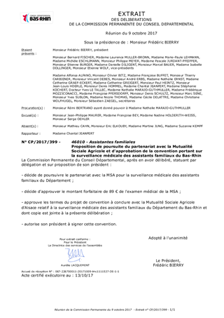 Proposition de poursuite du partenariat avec la Mutualité Sociale Agricole et d'approbation de la convention portant sur la surveillance médicale des assistants familiaux du Bas-Rhin