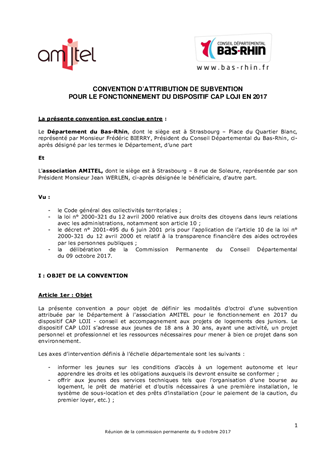 PDH - Proposition d'attribution d'une subvention à l'association AMITEL pour poursuivre le dispositif CAP'LOJI en 2017 et d'approbation du projet de convention