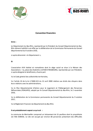 PDALHPD- Proposition d’attribution d’une subvention à l'association AVA habitat et nomadisme pour le cofinancement d'une mission d’intervenant technique pour le site de la rue de la Forêt à MERTZWILLER et d'approbation des termes du projet de convention financière