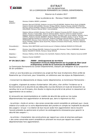 Proposition d’avis du Département sur le projet de Plan Local d’Urbanisme arrêté de la Commune de ROSENWILLER