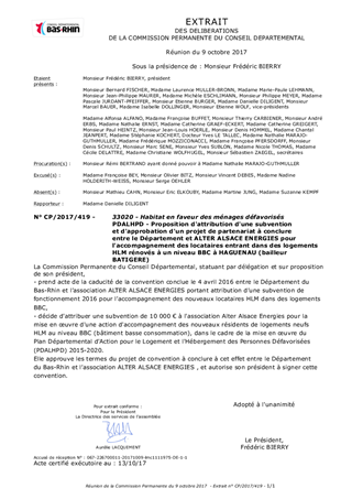 PDALHPD - Proposition d'attribution d'une subvention et d'approbation d'un projet de partenariat à conclure entre le Département et ALTER ALSACE ENERGIES pour l'accompagnement des locataires entrant dans des logements HLM rénovés à un niveau BBC à HAGUENAU (bailleur BATIGERE)