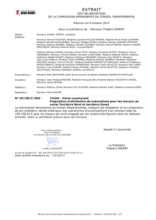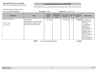 Le présent rapport a pour objet de proposer à la Commission Permanente de décider d’attribuer des subventions aux Communes de Domfessel, Wingen, Wissembourg et Rittershoffen et groupements de Communes de la Mossig et Vignoble, Saverne- Marmoutier-Sommerau et Pays de Wissembourg pour les travaux de voirie inscrits dans les contrats de territoire