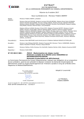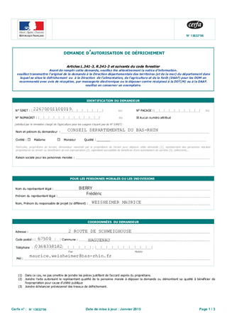 Itinéraire cyclable de la RD263 entre HAGUENAU et NIEDERSCHAEFFOLSHEIM. Demande d'autorisation de défrichement
