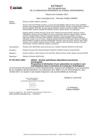 Le présent rapport a pour objet de proposer à la Commission Permanente de décider d'attribuer une subvention de fonctionnement à la Ville de Schiltigheim pour l'organisation d'une journée dédiée au Handicap sur son territoire.