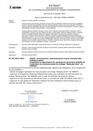 Proposition d'approbation du programme technique détaillé de l'opération de restructuration du collège "Baldung Grien" de HOERDT