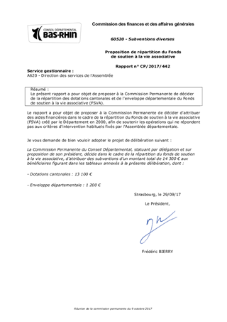 Le présent rapport a pour objet de proposer à la Commission Permanente de décider de la répartition des dotations cantonales et de l'enveloppe départementale du Fonds de soutien à la vie associative (FSVA).