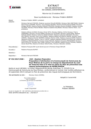 Proposition d'attribution à la Communauté de Communes du Pays Rhénan de la part à la charge du Département du coût de mesures liées à la mise en place du Plan de prévention des risques technologiques de HERRLISHEIM