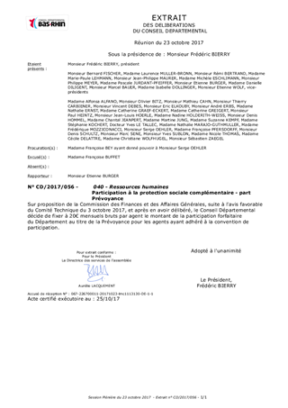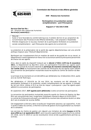 Suite à l’avis favorable du comité technique du 3 octobre dernier et sur proposition de la Commission des Finances et des Affaires Générales, il est proposé à l’Assemblée Plénière d’approuver le nouveau montant de la participation forfaitaire à la protection sociale complémentaire - part Prévoyance des agents de la collectivité.