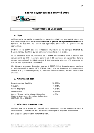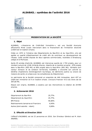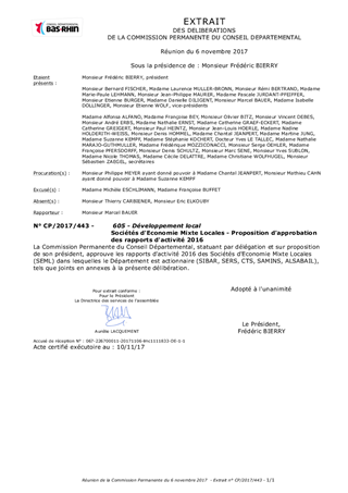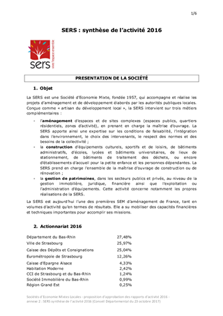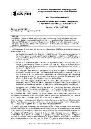 Le présent rapport propose à la Commission Permanente du Conseil Départemental de décider d'approuver les rapports d'activité 2016 des Sociétés d'Economie Mixte Locales (SEML), dans lesquelles le Département du Bas-Rhin est actionnaire au titre de l'exercice de ses compétences. Une synthèse de l'activité 2016 de chaque société est proposée en annexes.