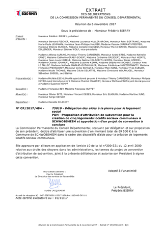 PDH - Proposition d’attribution de subvention pour la création de cinq logements locatifs sociaux communaux à SCHWOBSHEIM et approbation d'un projet de convention à conclure