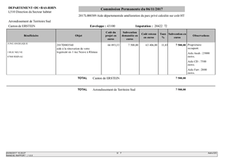 Le rapport a pour objet de proposer à la Commission Permanente de décider d'attribuer des aides financières en faveur de propriétaires privés occupants et/ou bailleurs, au titre de la politique volontariste du Département en faveur de la valorisation du bâti traditionnel bas-rhinois et de l'amélioration de l'habitat privé adoptée par le Conseil Départemental le 20 juin 2016, en complément des subventions de l'Agence nationale de l'habitat (ANAH). A ce titre, 9 projets concernant des logements de propriétaires sont présentés dans les annexes jointes, par territoires d'action.