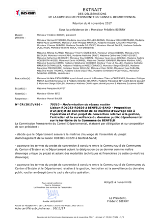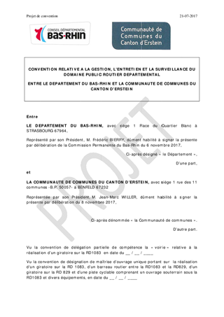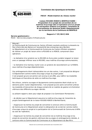 Liaison RD1083-RD829 à BENFELD-SAND - Proposition d'un projet de convention de co-maîtrise d'ouvrage liée à l'opération et d'un projet de convention relative à la gestion, l'entretien et la surveillance du domaine public départemental sur le territoire de la Commune de BENFELD