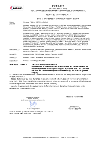 Proposition d'attribution de subventions au titre du fonds de développement urbain pour l'appel à projets 2017 du Contrat de Ville de l'Eurométropole de Strasbourg 2015-2020 (3ème vague)