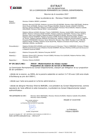Le présent rapport a pour objet de proposer à la Commission Permanente de décider de la cession d'une parcelle de terrain à ESCHBOURG pour permettre la mise aux normes du réseau d'assainissement de Graufthal.