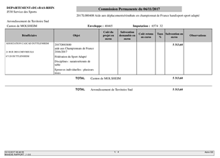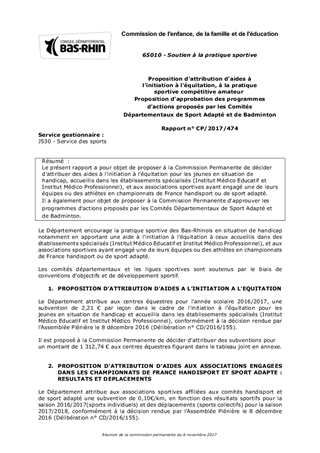 Proposition d'attribution d'aides à l'initiation à l'équitation, à la pratique sportive compétitive amateur Proposition d'approbation des programmes d'actions proposés par les Comités Départementaux de Sport Adapté et de Badminton
