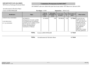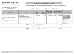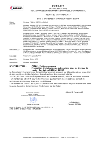 Le présent rapport a pour objet de proposer à la Commission Permanente de décider d’attribuer des subventions à la Commune de Quatzenheim et au groupement de Communes du Pays de Niederbronn pour les travaux de voirie inscrits dans les contrats de territoire.