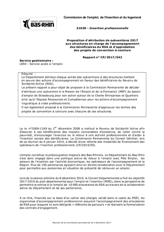 Proposition d’attribution de subventions 2017 aux structures en charge de l’accompagnement des bénéficiaires du RSA et d'approbation des projets de convention à conclure