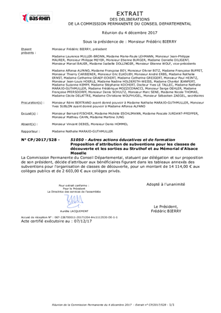 Proposition d'attribution de subventions pour les classes de découverte et les sorties au Struthof et au Mémorial d'Alsace Moselle