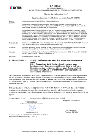 PDH - Proposition d'attribution de subventions pour l'aménagement des espaces extérieurs dans le cadre du financement des résidences séniors pour des opérations situées à HAGUENAU et WEYERSHEIM et d'approbation de conventions financières