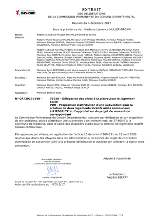 PDH - Proposition d’attribution d'une subvention pour la création de deux logements locatifs aidés communaux à RIEDSELTZ et d'approbation du projet de convention correspondant