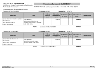 Proposition d'attribution de subventions au titre du fonds de développement urbain pour l'appel à projets 2017 du Contrat de Ville de l'Eurométropole de STRASBOURG 2015-2020 (4ème vague)