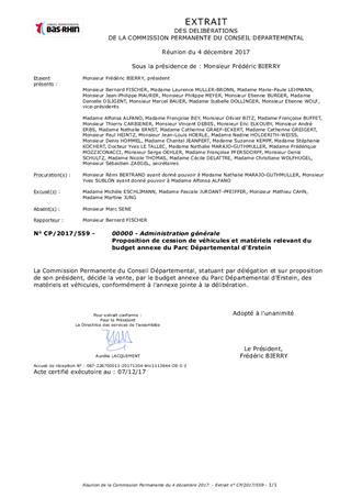 Proposition de cession de véhicules et matériels relevant du budget annexe du Parc Départemental d’Erstein