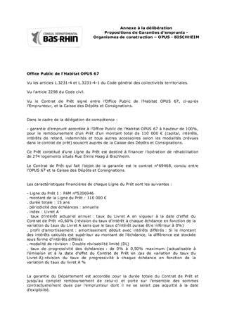 Propositions de Garanties d’emprunts - Organismes de construction - OPUS - BISCHHEIM