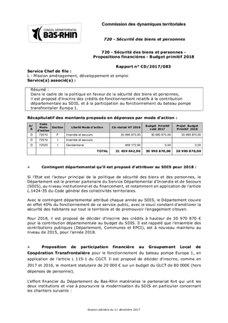 720 - Sécurité des biens et personnes - Propositions financières - Budget primitif 2018