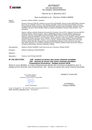 140 - Actions en faveur des zones urbaines sensibles - Propositions financières - Budget primitif 2018