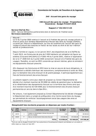 340 Accueil des gens du voyage - Propositions financières - Budget Primitif 2018
