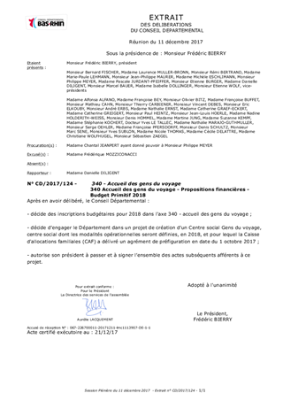 La loi du 5 juillet 2000 relative à l'accueil et à l'habitat des gens du voyage prévoit la mise en place d'un Schéma Départemental d'Accueil des Gens du Voyage (SDAGV), co-porté par l'Etat et le Département, qui fixe les conditions de l'accueil des gens du voyage et prévoit des mesures en faveur de leur accès au droit et de leur insertion sociale et professionnelle. Depuis l'entrée en vigueur, le 1er janvier 2017, des dispositions de la loi NoTRe du 7 août 2015, les Communes de plus de 5 000 habitants ont obligation de figurer au schéma (Circulaire UHC/IUH1/12 n°2001-49 du 5 juillet 2001, relative à l’application de la loi n° 2000-614 du 5 juillet 2000 concernant l’accueil et à l’habitat des gens du voyage). Toutefois, ce sont les EPCI concernés qui doivent réaliser, gérer et entretenir les équipements d'accueil prescrits. Afin d'appuyer les Communes et EPCI dans la mise en oeuvre de leurs obligations, le Département a décidé d’attribuer des subventions, complémentaires à celles de l’Etat, pour la réalisation des aires d’accueil et de grand passage. Il participe également aux frais de fonctionnement des aires d’accueil. Le présent rapport a ainsi pour objet de proposer au Conseil Départemental de décider d'un montant maximal de 55 000€ de crédits de paiement pour la réalisation et la réhabilitation des équipements d'accueil sur le territoire bas-rhinois ainsi que d'un montant maximal de 420 000€ pour le fonctionnement des 20 aires d'accueil permanentes en service dans le Bas-Rhin. Par ailleurs, il est également proposé au Conseil Départemental de décider d’engager le Département dans un projet de préfiguration d’un Centre social Gens du Voyage, qui permettrait de renforcer l’accompagnement social des usagers des aires et équipements d’accueil.