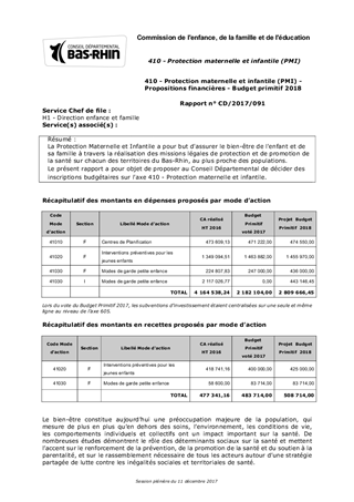 410 - Protection maternelle et infantile (PMI) - Propositions financières - Budget primitif 2018