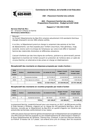 460 - Placement familial des enfants - Propositions financières - Budget primitif 2018