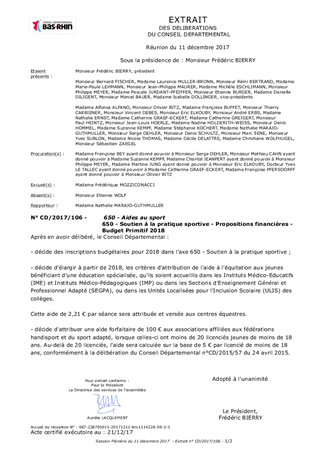 650 - Soutien à la pratique sportive - Propositions financières - Budget Primitif 2018