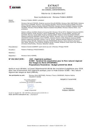 61060 - Syndicat de coopération pour le Parc naturel régional des Vosges du Nord (SYCOPARC) Propositions financières - Budget primitif de 2018