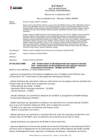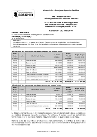 Le présent rapport propose au Conseil Départemental de décider des inscriptions budgétaires pour 2018 au titre de la préservation et du développement des espaces naturels.