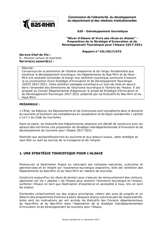 "Rêver d'Alsace et Vivre ses rêves en Alsace" - Proposition de la Stratégie d'Innovation et de Développement Touristique pour l'Alsace 2017-2021