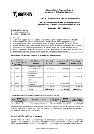 230 - Accompagnement des personnes âgées - Propositions financières - Budget primitif 2018