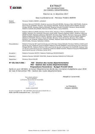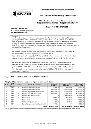 705 - Gestion des routes départementales Propositions financières - Budget Primitif 2018