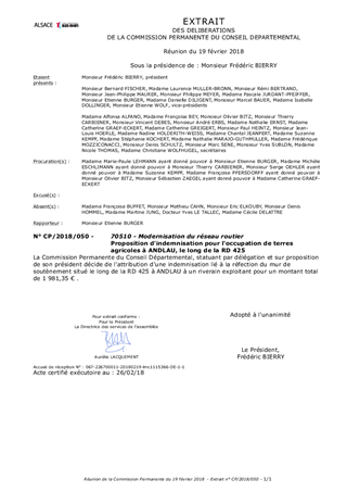 Proposition d'indemnisation pour l'occupation de terres agricoles à ANDLAU, le long de la RD 425