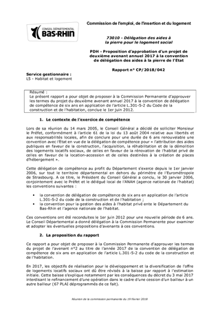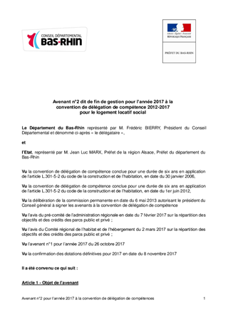 Le présent rapport a pour objet de proposer à la Commission Permanente d’approuver les termes du projet du deuxième avenant annuel 2017 à la convention de délégation de compétence de six ans en application de l’article L.301-5-2 du Code de la construction et de l’habitation, conclue le 1er juin 2012.