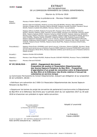 Proposition de soutien à l’Association Départementale des Jeunes Sapeurs Pompiers du Bas-Rhin - Proposition d'approbation d'un projet de convention entre le Département du Bas-Rhin et le Défenseur des Droits relative à l’accueil de volontaires en service civique